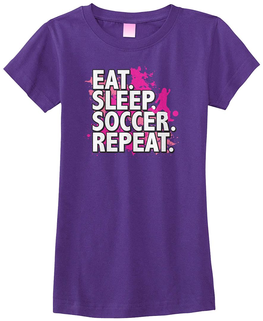 T-shirt Threadrock filles mangent sommeil football à prix réduit ajusté répété coup de pied but sport, T-shirt Threadrock filles mangent sommeil football ajusté répété coup de pied but sport tendance